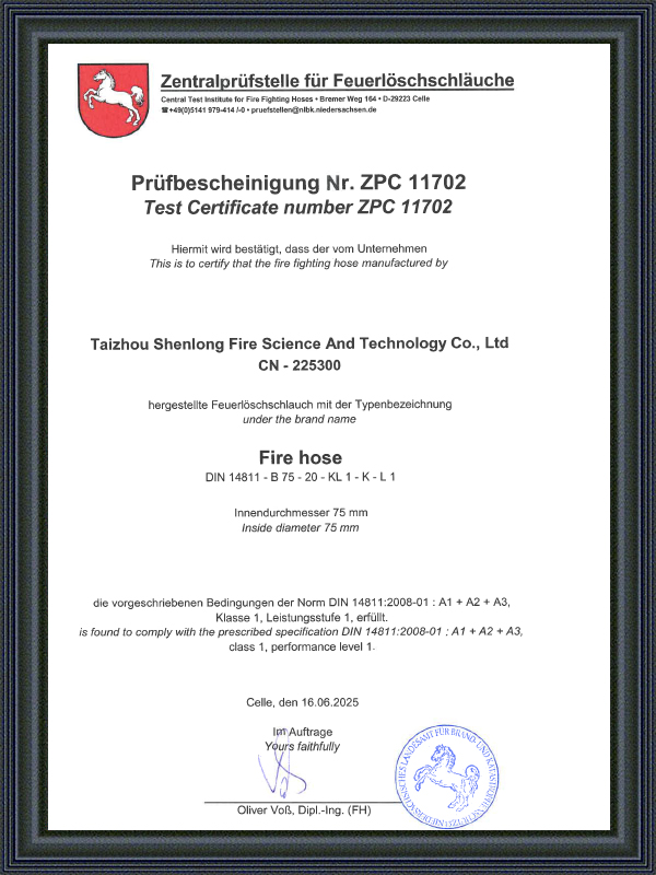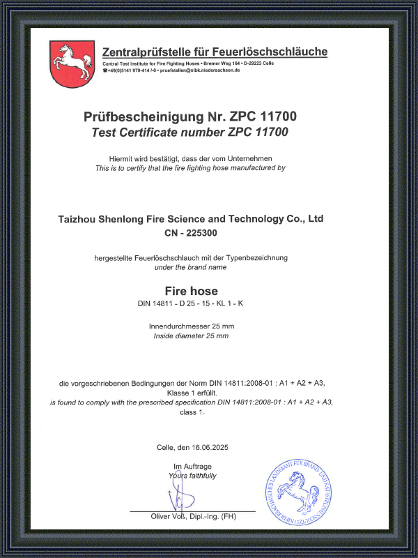Die Taizhou Shenlong Fire Science and Technology Co., Ltd. wurde 1995 gegründet und ist ein Unternehmen, das Forschung und Entwicklung, Produktion, Vertrieb und Service vereint. Die Hauptprodukte sind Feuerwehrschläuche mit verschiedenen Innenbeschichtungen. Gleichzeitig kann das Unternehmen auch verschiedene Außenhandelsprodukte (Gummi, PVC, Polyurethan, doppelseitiges Klebeband) nach Kundenwunsch übernehmen. Die Produkte verkaufen sich gut in mehr als 20 Provinzen, Städten und autonomen Regionen.